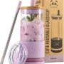 - EXCLUSIVE BONUS: Offering unrivaled value for money: 2 unbreakable straws: 1 Normal Size; great for Iced Coffee & Water + 1 Large Size one; ideal for shakes, smoothies & Boba + a Cleaning straw brush. 2 Different Lids: 1 Bamboo Lid; Perfect for Indoor use & a second lid 100% Leakproof ; Ideal for Outdoor Use! Presented in a beautiful Gift Box. With so many second-rate Glass Tumbler With Lid and Straw available on the market we wanted to set ourselves apart and be the best!